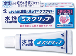 ★11/1 9:59まで30人に1人がタダ!★水性入れ歯安定剤ミズグリップ 75g 価格: 980円 レビュー評価: 4.0 レビュー数:1 【商品特徴】 ・水性入れ歯安定剤 ・ ベタつきの原因となる油分を配合していないので、入れ歯をはずした後に不快なベタつきや歯ぐき残りがありません。 ・ 水ベースだからピタッとくっつき、はずしやすい弱粘性タイプ。入れ歯に残った安定剤も水ですすぐだけで落とせます。 ・ 入れ歯と歯ぐきの小さなすき間をうめるので、食べ物などの侵入による歯ぐきの痛みを防ぎます。 ・ 入れ歯に塗りやすい三角チューブ採用 【使用方法】 1. 入れ歯を水でよく洗ってください。 2. 入れ歯の歯ぐきがあたる部分をよく乾かしてください。 3. 入れ歯の床数ヵ所に適量出します。 4. そのまま入れ歯を口にはめ込み、入れ歯を歯ぐきに軽 Supported by 楽天ウェブサービス |